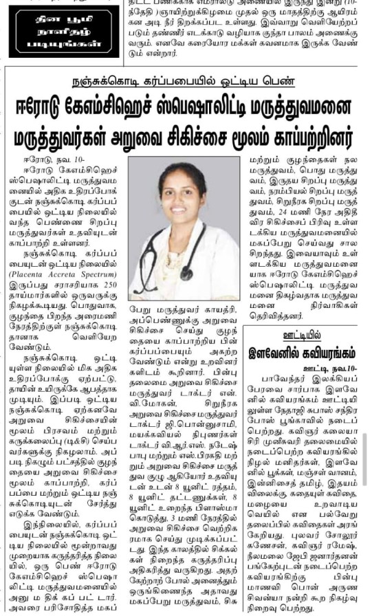 She currently working in KMCH ,Erode and offering consultations, treatments, and personalized care for women's health. Our state-of-the-art facility is equipped with the latest medical technology to provide the best possible care for our patients.